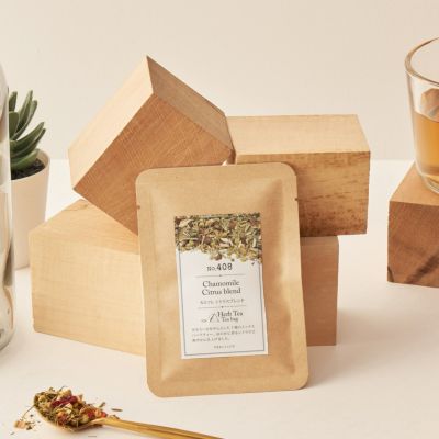 カモミールを中心に、ローズヒップやレモングラスなど7種のハーブをブレンドした「カミツレシトラスブレンド」。